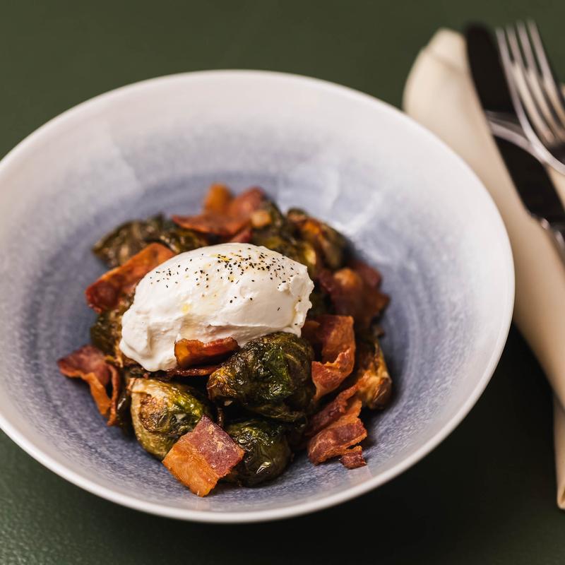 Poached eggs, cream, garlic, parmesan, grilled tuscan bread