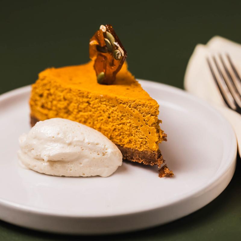 Graham cracker ginger, walnut crust, pumpkin seed brittle, rum whipped cream *nut allergen*